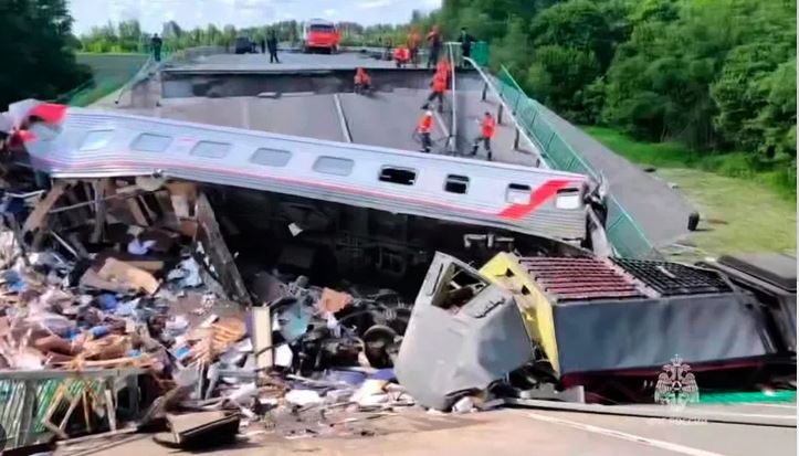 شان پاکستان جرمنی فرینکفرٹ/روس/یوکرین۔ غیر ملکی خبر رساں ادارے کے مطابق یوکرین کی سرحد سے متصل روس کے علاقوں میں راتوں رات دو پُل گرنے کے الگ الگ واقعات میں کم از کم سات افراد ہلاک جبکہ درجنوں زخمی ہو گئے، سرکاری میڈیا کے بیان کے مطابق پل گرنے کی تحقیقات ٭دہشت گردی کی کاروائیوں ٭ کے طور پر کی جا رہی ہے، علاقائی گورنر نے میڈیا سے بات کرتے ہوئے بتایا کہ برائنسک میں پل کے نیچے گرنے سے کئی بھاری ٹرک (ہیوی ٹرانسپورٹ) ہفتہ کے روز چلتی مسافر ٹرین پر آ گرے جس کی بنا پر کم از کم سات افراد ہلاک اور (اکہتر افراد) کے زخمی ہونے کی اطلاعات موصول ہوئی ہیں۔ قائم مقام گورنر الیگزنڈر نے بتایا کہ ایک پل کے گرنے کے چند گھنٹوں بعد کرسک کے زیلز نو گورسک ضلع میں ایک اور پُل گر گیاجس میں ایک لوکوموٹیو ٹرین نامعلوم وجوعات کی بنا پر پٹڑی سے اتر گئی، ماسکو ریلوے کے مطابق برائنسک پل ٭غیر قانونی مداخلت٭ کے نتیجہ میں گرا ہے۔ دوسری طرف یوکرین کی قومی سلامتی کے ایک اہلکار کے مطابق یہ واقعات امن مذاکرات سے قبل، مذاکرات کو پٹڑی سے اتارنے کی بنیاد ہے۔