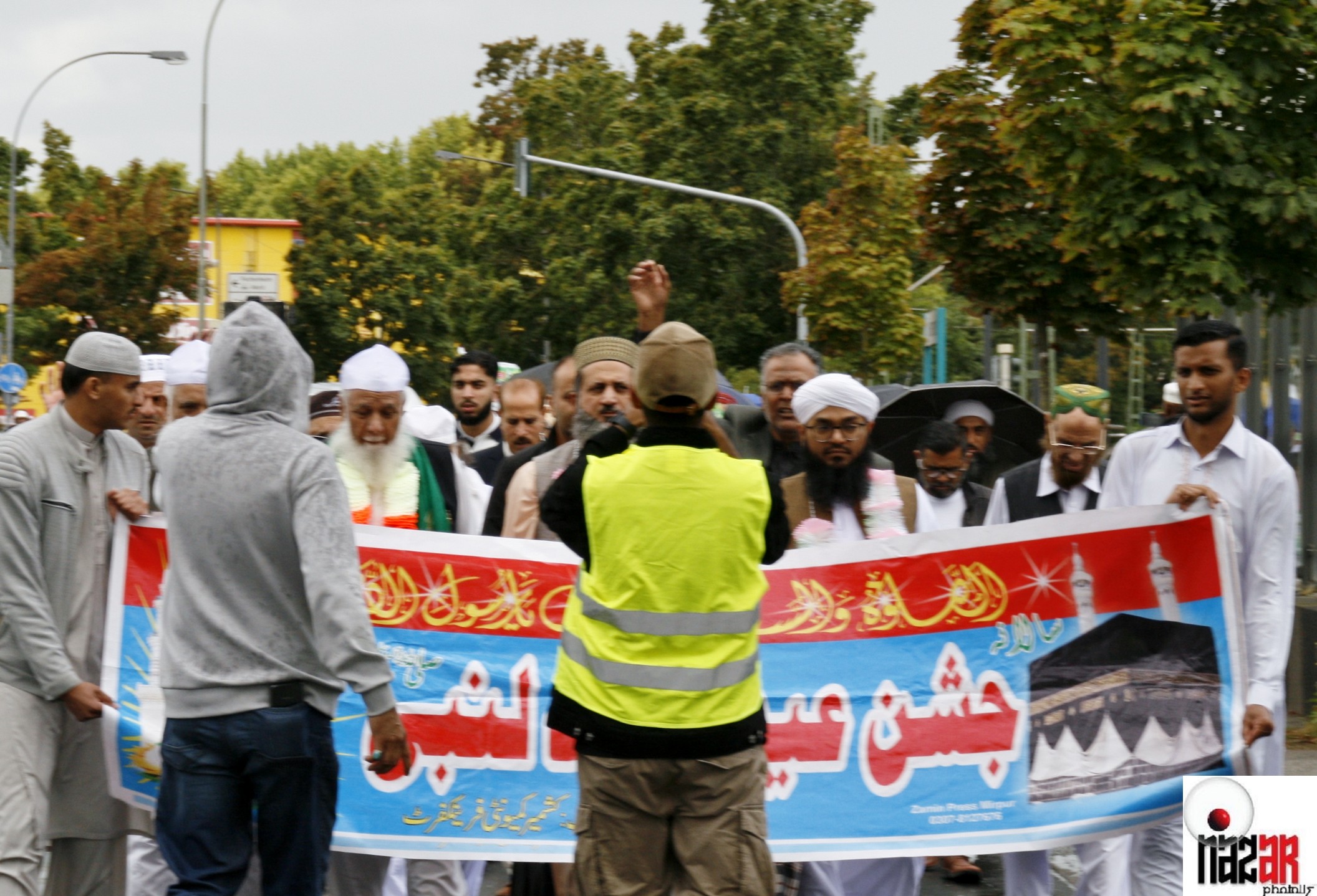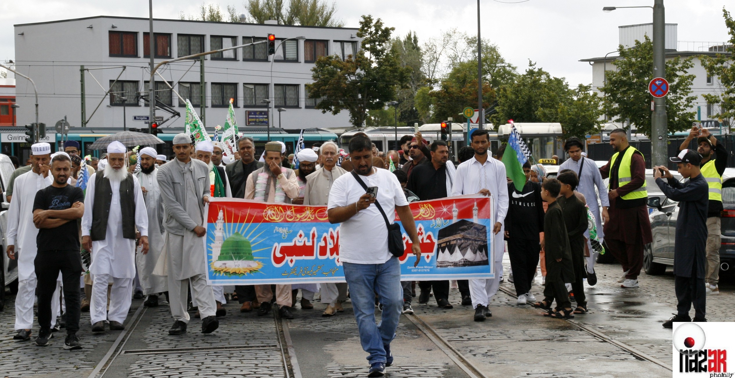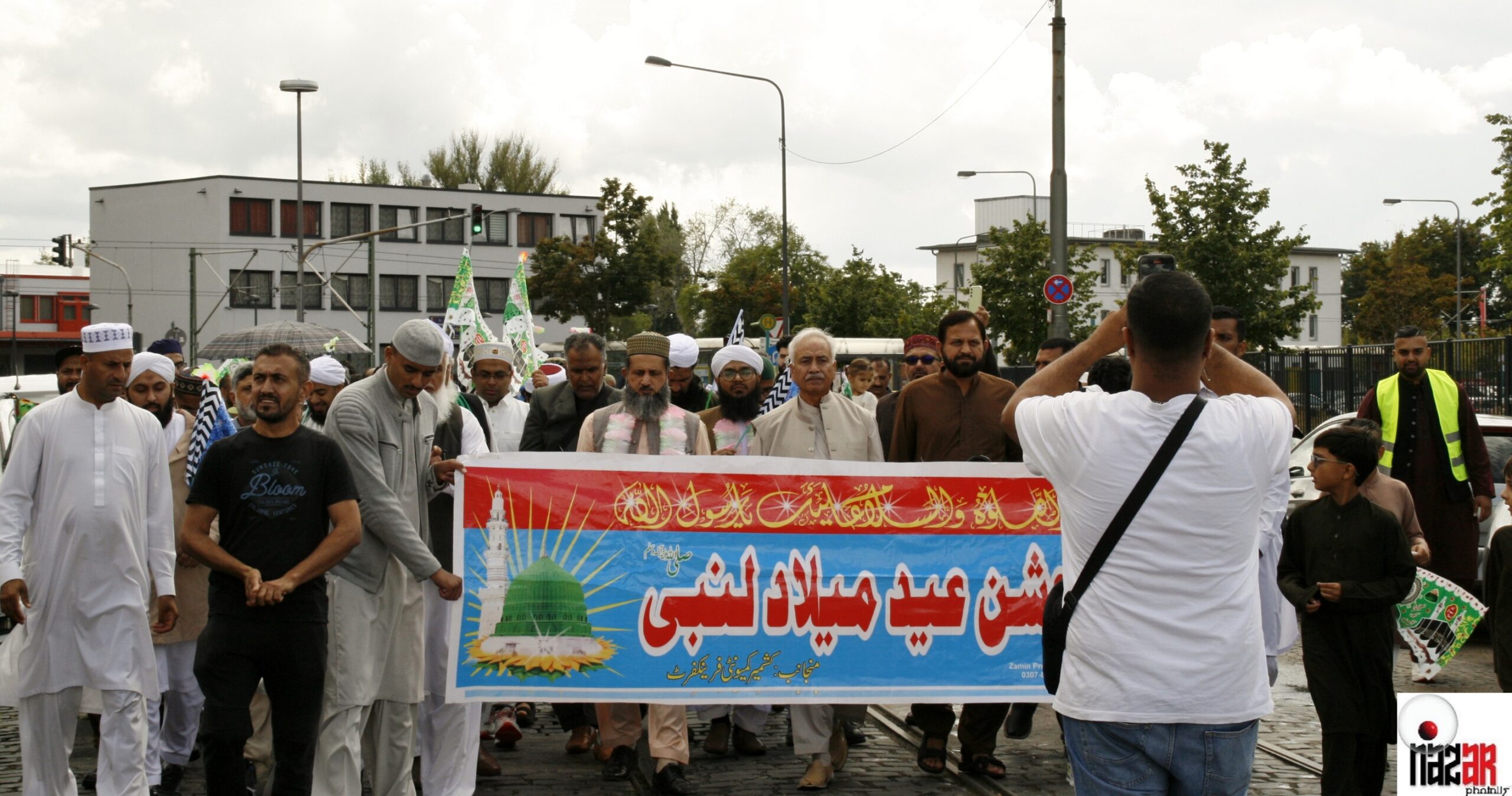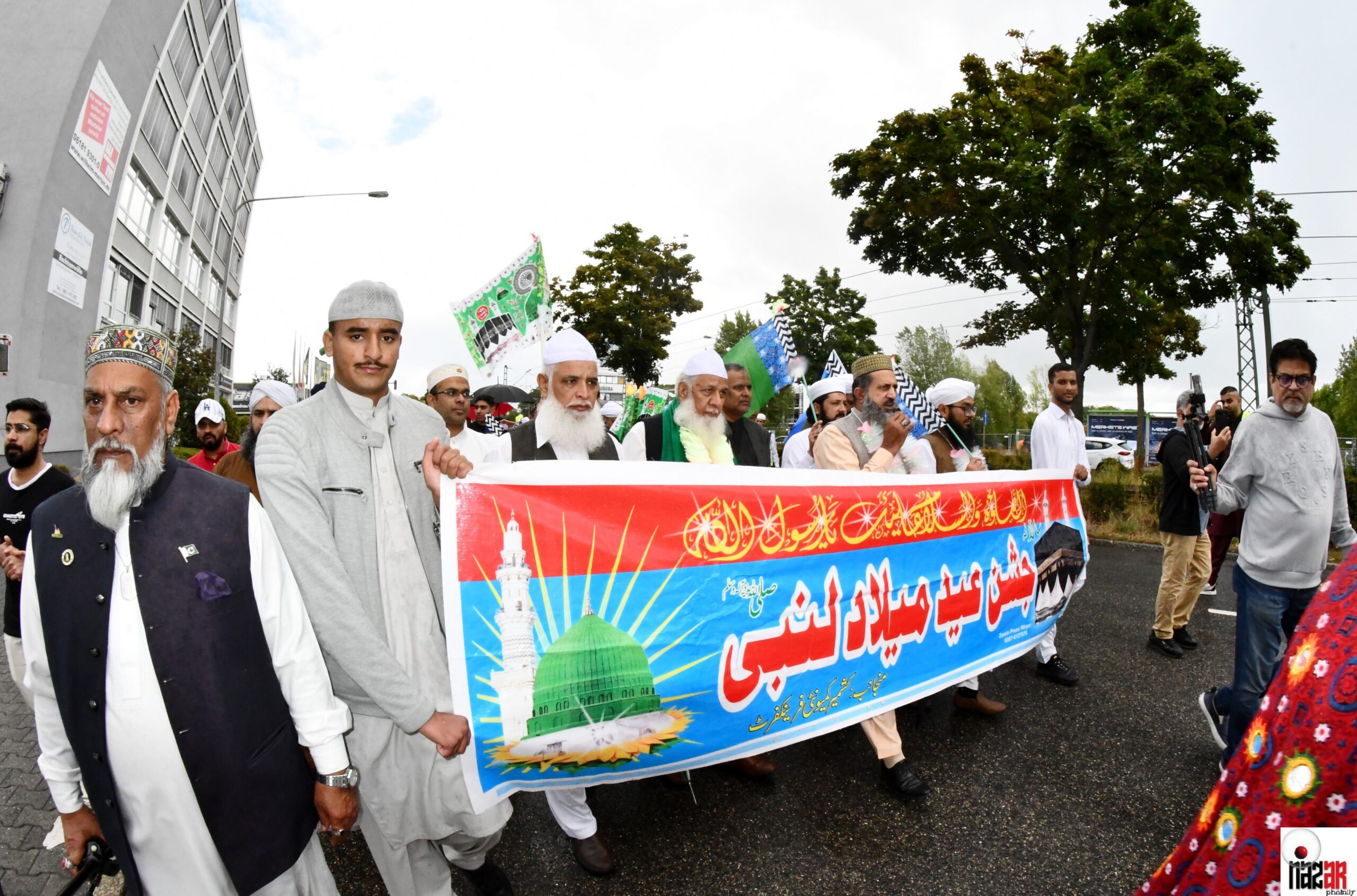 ٭جیسے ہی ماہ ربیع الاول کا آغاز ہوتا ہے نہ صرف مساجد جبکہ گلی گلی، محلہ محلہ میں عاشقان رسول، سرور کائنات حضرت محمد مصطفی ﷺ کی ولادت با سعادت کے حوالہ سے میلاد النبیﷺ کے جلوس نکالے جاتے ہیں۔ذکرو اذکار کی محافل سجائی جاتی ہیں، عالم و فاضل حضرات کو محافل میں خطاب کے لئے بلایا جاتا ہے اور خصوصی طور پر اوورسیز پاکستانی بڑی بڑی خوبصورت محافل سجاتے ہیں اسی بات کو مدنظر رکھتے ہوئے خصوصی طور پر 1500 ویں جشن میلاد النبیﷺ جمعہ کی شب جرمنی کے شہر فرینکفرٹ سے ملحق آفن باخ کے علاقے میں منائی گئی۔دعوت اسلامی کی مرکزی مجلس شوری کے رکن حاجی عبد الحبیب کی سرپرستی میں مشعل بردار جلوس نکالا گیا،جو مختلف راستوں سے ہوتا ہو مسجدا فیضان مدینہ پر اختتام ہوا۔بروز ہفتہ جامع مسجد غوثیہ پاک دارالسلام فرینکفرٹ میں عاشقان رسول کے لئے ہمیشہ کی طرح (ریفریشمنٹ۔ ناشتہ) کا اہتمام کیا گیا جس میں چنے،نان،جلیبی اور چائے پیش کی گئی اس کے بعد ٹھیک (ایک 13:00بجے) عاشقان رسول ﷺ کا جلوس پیر طریقت رہبر شریعت حضرت مولانا علامہ پیر افتخار علی چشتی خطیب اعظم ہالینڈ اور حضرت علامہ ملک محمد صدیق پتھروی امام و خطیب جامع مسجد غوثیہ کی سرپرستی میں شدید بارش کے باوجود روانہ ہوا،جو مختلف راستوں سے ہوتا ہوا جامع مسجد غوثیہ تک پہنچا ٭