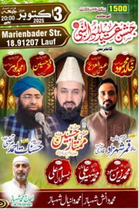 ۔،۔ 3 اکتوبر بروز جمعّہ فرینکفرٹ سے (دو سو بیتالیس کلو میٹر) کی دوری پر لاووُف میں جشن عید میلاد النبیﷺ کا انعقاد۔ نذر حسین۔،۔