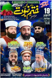 ۔،۔ 19 اکتوبر بروز اتوار دوپہر (13:30) بجے سالانہ ختم نبوت کانفرنس کا انعقاد کیا جائے گا۔۔،۔ آپ کے شہر فرینکفرٹ میں بغداد سے سجادہ نشین دربار غوث اعظم الشیخ السید ہاشم الدین الگیلانی تشریف لا رہے ہیں۔،۔ نذر حسین۔،۔