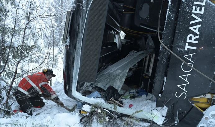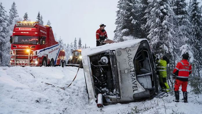 ٭(وِل ہیلمینا وِسٹر بوٹن صوبہ) کے قریب،جب طلباء فن لینڈ کے لیپ لینڈ جا رہے تھے کے ایک برف سے ڈھکے ہوئے حصّہ(پھسلن والی ہائی وے) پر موڑ میں بس قابو سے باہر ہو کر الٹ گئی،بس میں کل ستاون مسافر سوار تھے٭