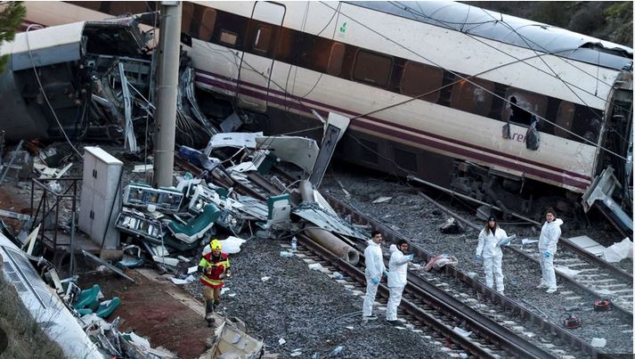 ۔،۔ اسپین میں دو ٹرینوں کا المناک تصادم جس کی بنا پر انتالیس 39افراد ہلاک ہو گئے۔ نذر حسین۔،۔