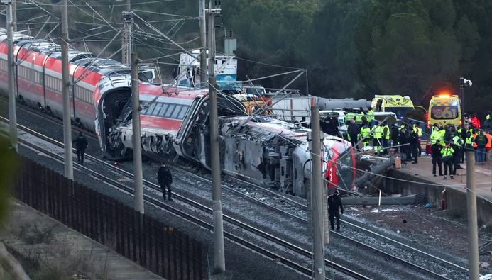 شان پاکستان جرمنی فرینکفرٹ/اسپین/قرطبہ/داموز۔ غیر ملکی خبر رساں ایجنسی کے مطابق یہ حادثہ جنوبی اسپین میں ایک تیز رفتار ٹرین پٹڑی سے اترنے کے بعد مخالف سمت سے آنے والی تیز رفتار ٹرین کے ساتھ پیش آیا ،رپورٹ کے مطابق انتالیس 39افراد ہلاک ہو گئے جبکہ 75 افراد کو اسپتال منتقل کیا گیا جن میں سے چند کی حالت تشویشناک بتائی جا رہی ہیاندلس کی علاقائی حکومت کے سربراہ کے مطابق ہلاکتوں کی تعداد بڑھنے کے امکانات زیادہ ہیں، ان کے مطابق حادثہ اتنی شدت کا تھا کہ ہمیں مزید لاشیں بھی مل سکتی ہیں، ان کا مزید کہنا تھا کہ تباہ شدہ ٹرین کی بوگیوں کے ملبے کو ہٹانے اور متاثرین کو تلاش کرنے کے لئے بھاری مشینری بھی استعمال میں لائی گئی ہے۔ مقامی اخبار ال پائیس کے مطابق میڈریڈ سے آنے والی ٹرین کا (ستائیس سالہ) ڈرائیور بھی ہلاک ہونے والوں میں شامل ہے، ایک رپورٹ کے مطابق دونوں ٹرینوں میں مجموعی طور پر چار سو افراد سفر کر رہے تھے،جس میں اکثریت ہسپانوی شہریوں کی تھی جو ویک اینڈ پر میڈریڈ آ جا رہے تھے۔ ریاستی ادارے (رینفے) کے زیر انتظام ہوئیلوا جانے والی ٹرین ٹکر کے وقت تقریباََ (دو سو 200 کلو میٹر) فی گھنٹہ کی رفتار سے چل رہی تھی۔
