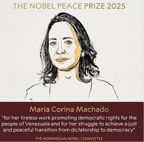 ۔،۔امن کا نوبل انعام وینزویلا کی (ماریہ کورینا مچاڈو)کے نام۔ڈونلڈ ٹرمپ کا خواب چکنا چور۔ نذر حسین۔،۔